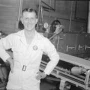 An unidentified Foremost Dairies employee. The company was located on the corner of East Market and Cherokee streets.