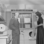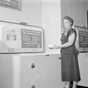 The laundry department at Homeland Furniture and Appliances. Homeland was located at 110 East Center Street. The company’s president, secretary, and treasurer were Flem Dobyns, Guy Culbertson, and George W. Taylor.