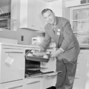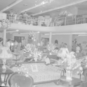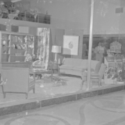The showroom at Homeland Furniture and Appliances. Homeland was located at 110 East Center Street. The company’s president, secretary, and treasurer were Flem Dobyns, Guy Culbertson, and George W. Taylor.