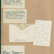 The scrapbook details the early years of her marriage to Clyde Barnett and her involvement in various social groups such as the Woodlawn Garden Club and the Palette and Brush Club later in life. The scrapbook contain newspaper clippings, photographs, correspondence, and event programs.