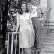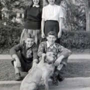 Members of the Dobyns-Bennett Distributive Education Club, 1946. Gladys Archer, President; June Fletcher; Secretary; Herbert Kilgore, Vice-President; Jack Clayman, Treasurer and unknown dog.
