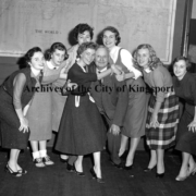 Dr. E.W. Tipton surrounded by members of the Kiwanis Kapers. The Kiwanis Kapers were a community variety program presented for several decades in Kingsport, Tennessee. The Kapers had a number of acts that varied from a chorus line, to a minstrel act, and various variety skits.