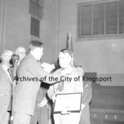 Unidentified male receiving an award from the Sequoyah Council Boy Scouts.