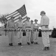 The Armed Forces Parade marching in front of Kite’s Esso Servicecenter. Kite’s was located on East Center Street at the corner of Cherokee Street.