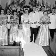 The wedding party from the Mary K. Seagle and James O. Isreal, Jr. wedding. The wedding took place on August 5, 1950 at West View Methodist Church.