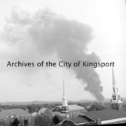 A massive cloud forms over downtown Kingsport-the result of an explosion at the Aniline division of Tennessee Eastman on October 4th, 1960. Fifteen people were killed as a result of the explosion and 200 more were injured.