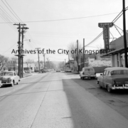 View of East Center Street around the intersection of Nall Street. Businesses in the image include Leeper’s Supermarket, Highland Shell Station, Gardner Equipment Company and White Floral Company.