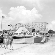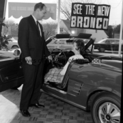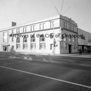 The First National Bank was located on the corner of Broad and Center Streets. Other businesses in the photo include Parks-Belk, Sterchi Brothers, The Jewel Box, Wallace News, Betty Gay, Zales, and Moore and Walker.