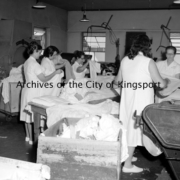 Women working in the laundry facilities at Holston Valley Community Hospital.