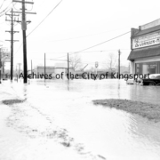 Downtown streets were flooded in March 1963. Water stands up to the hub caps on the cars in front of Johnson-Hillard, Other businesses in the image include Livesay Grill, located at 706 W. Sullivan, J.A. McCurry Auto Parts and C.M. Taylor.