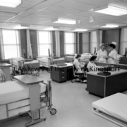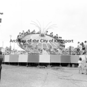 The intersection of Commerce and East Market Streets. Businesses in this image include Harold’s TV and Appliance Store. Smokehouse Pitt Bar-B-Que and the Kingsport Electric Company Lighting Display Room.