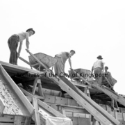 Unidentified men working on the construction of the Civic Auditorium. The auditorium was opened in March 1940.