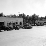 The exterior of Tom Yancey, Inc. The business was located on Revere Street. Tom Yancey, Inc. sold and serviced Lincoln and Mercury automobiles.
