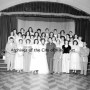 Members of the Kiwanis Kapers practicing for a performance.The Kiwanis Kapers were a community variety program presented for several decades in Kingsport, Tennessee. The Kapers had a number of acts that varied from a chorus line, to a minstrel act, and various variety skits. From left to right (front row): Harriet Flora, Judy Warren (back […]