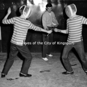 Bob Prince, Larry Powell, and Bill Parker fencing at the Boys Club.