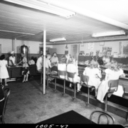 Customers eating at the Mason & Dixon lunch counter. The trucking company was located on Eastman Road. E. Ward King was president and treasurer of the company; Stewart T. King was the vice president; Lloyd W. Pendleton was the secretary; D. Ruth Pickering was the assistant secretary.