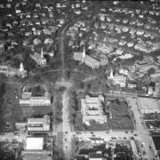 Aerial view of Church Circle and surrounding area as it was in 1949. Photograph taken for the Kingsport City Chamber of Commerce.