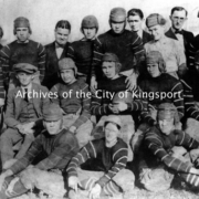 Kingsport’s first high school football team. Front Row: Van Dorsey, Robert “Bobby” Dodd, Josh Denham. Middle Row: Elmer Breeding, Milton DeVault, Walter Poston, Carl Rutherford, Bert Fine. Back Row: William Williamson, Arthur Poston, William Rutherford, Coach Don Williamson, E.B. Blankenbecler, Lee Meredith, Claude Greer (Manager), Fred Wright, Leslie Simmons, John Dodd.
