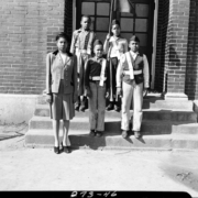 Members from a local troop of the Safety Council. Although unknown, the boys probably lived in Kingsport’s Riverside Community and were probably standing outside the Douglass School.