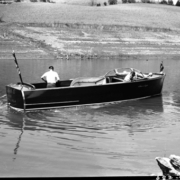 Two passengers on a Cherokee Boat Company boat. The business was located at 327 West Market Street.