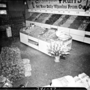 Vegetable section at Cut Rate Super Market, located at 440 East Sullivan Street. Henry T. Helton and Thomas La Guardia Jr. were the store owners.