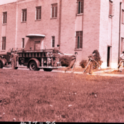 Firefighters from the Kingsport Fire Department, Station No. 2, performing a training exercise. The department is located at 1804 Crescent Drive, between Fort Henry Drive (then named Johnson City Highway) and Center Street(then Bristol Highway). Jas C. Taylor was the chief.