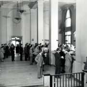 Lobby area of First National Bank located at 253-255 Broad Street on the Corner with East Center Street. Albert D. Brockman served as the bank’s president while Charles P. Edwards, Jr. was the Vice-president.