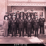 Members of the Kingsport Police Department taking a group portrait on the steps of the city’s Civic Auditorium.