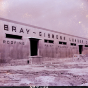 Exterior view of Bray-Gibbons Lumber Co. located at 425 Clinchfield Street. The company provided building and general contractors, materials and supplies, roofing and insulation, and sold lumber, brick, and building hardware.