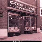 Front exterior view of Copeland Office Equipment Company located at 107 W Center Street. The store was located at the west end of the Freels building.