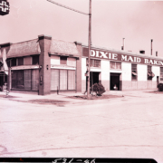 Exterior view of Dixie Maid Baking Company, located at 201 Cherokee Street. Dixie Maid Company sold retail and wholesale baked goods. The business was owned by Lee R. Drury and Denzil S. Sample.