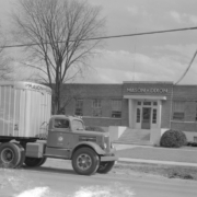 Mason & Dixon company truck parked in front of the Mason & Dixon building. The trucking company was located on Eastman Road. E. Ward King was president and treasurer of the company; Stewart T. King was the vice president; Lloyd W. Pendleton was the secretary; D. Ruth Pickering was the assistant secretary.