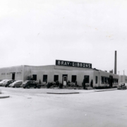 Exterior view of Bray-Gibbons Lumber Co. located at 425 Clinchfield Street. The company provided building and general contractors, materials and supplies, roofing and insulation, and sold lumber, brick, and building hardware.