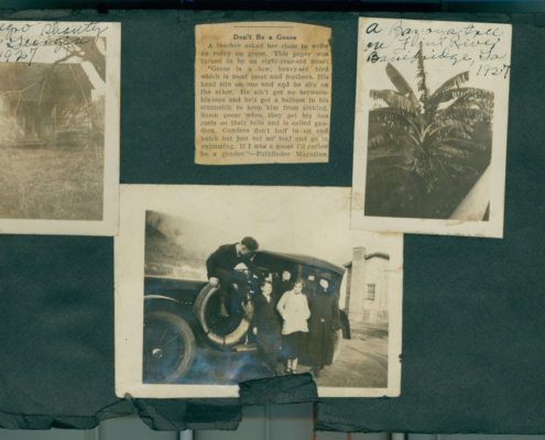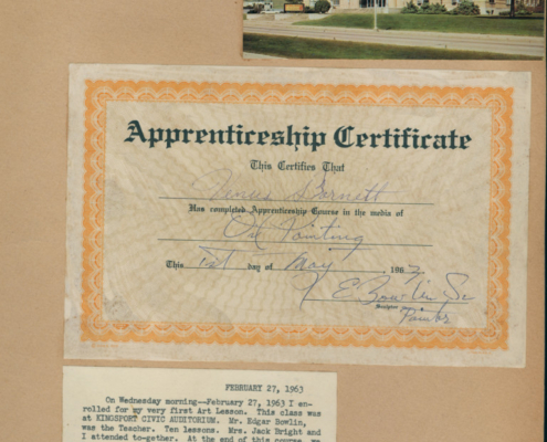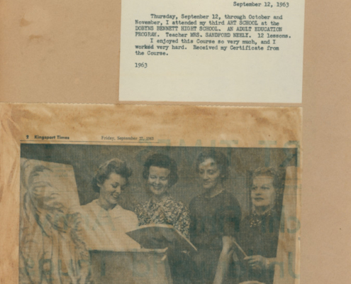 The Venus Barnett Family and Organizations Photographs and Scrapbooks collection contains three scrapbooks and two photo albums created by Kingsport resident Venus Barnett. The scrapbooks detail the early years of her marriage to Clyde Barnett and her involvement in various social groups such as the Woodlawn Garden Club and the Palette and Brush Club later in life. Scrapbooks contain newspaper clippings, photographs, correspondence, and event programs. Also included in the collection are additional newspaper clippings, correspondence, and genealogical material. Folders are arranged alphabetically, and then chronologically.