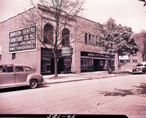 Exterior views of Piggly Wiggly and Johnson-Gentry Furniture Company