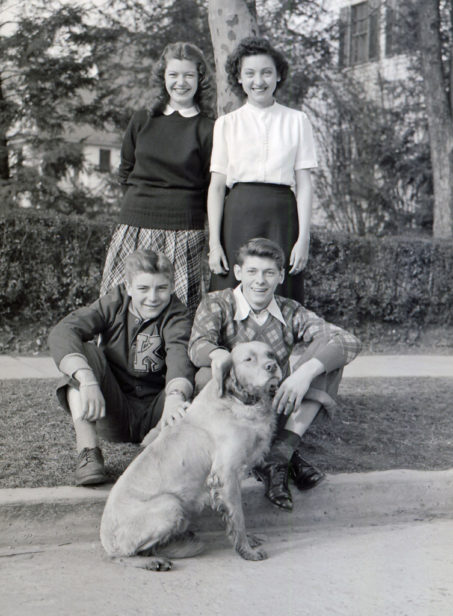 Members of the Dobyns-Bennett Distributive Education Club, 1946. Gladys Archer, President; June Fletcher; Secretary; Herbert Kilgore, Vice-President; Jack Clayman, Treasurer and unknown dog.