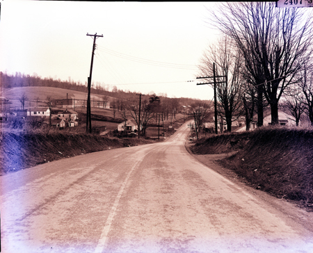 A scene along Bloomingdale Pike. The image was taken from an area near Marietta Street. Kingsley Elementary School is visible in the background.