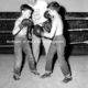 Buddy Russell, Ronald Sams, and Frank Moore in the weightlifting area at the Boys Club.