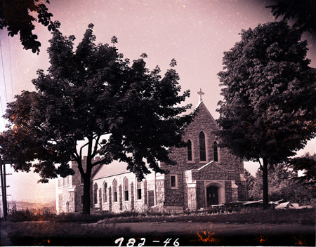 Exterior view of Church of Christ, located on Watauga Street at the corner of Gibson Mill Road. J.Sidney Astin was the minister.