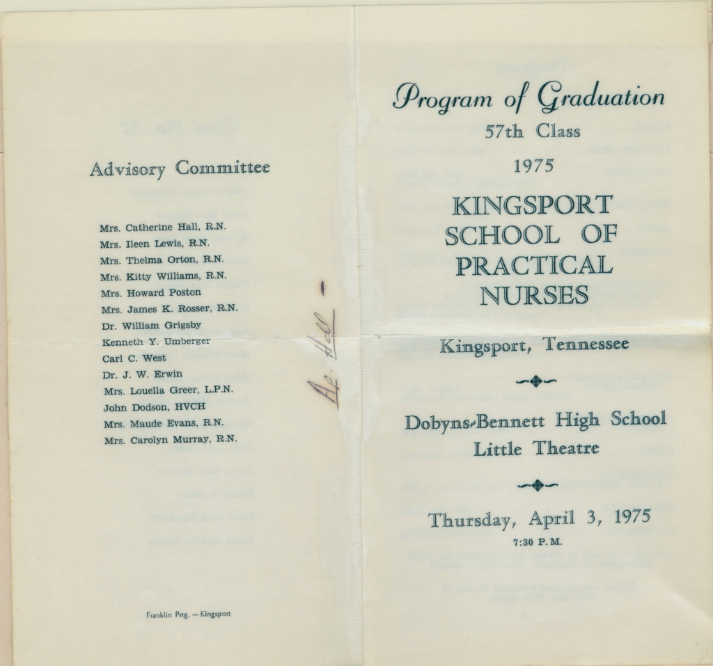 Collection(s): Kingsport School for Practical Nurses Collection, 1947-1992