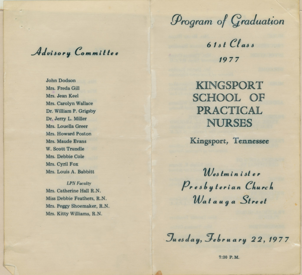 Collection(s): Kingsport School for Practical Nurses Collection, 1947-1992
