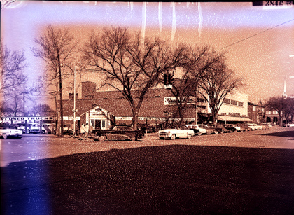 View of the corner of Broad and Center streets. Shortly after this photograph was taken, the used car lot run by Craft Motors was demolished and construction of Kingsport’s final J. Fred Johnson & Company store was started.