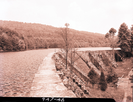 Dam/Reservoir at Bays Mountain Lake prior to the installation of guard rails.