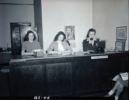 Information Desk at Dobyns-Bennett High School. Miss Ruth Ramer, assistant principal of DBHS, is on the right.