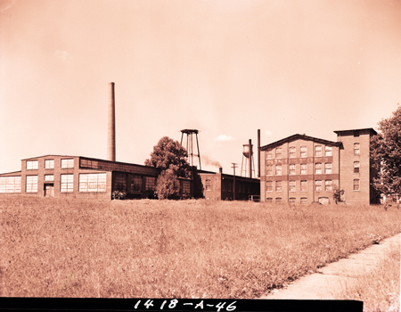 View of Dobyns-Taylor Warehouse. This complex was formerly home to the Kingsport Hosiery Mills. The building on the left contained a full-fashioned hosiery department while the right building dealt with seamless hosiery. The mill was incorporated 13 March 1917. The Kingsport Hosiery Mills was controlled by the W.B. Davis and Son Company. More information about this facility can be obtained from Kingsport: A Romance of Industry by Howard Long.