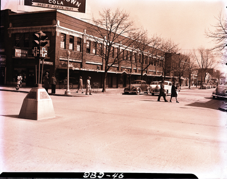 Side view of the Nall Building located at 104 East Market Street. The building housed a number of small establishments.