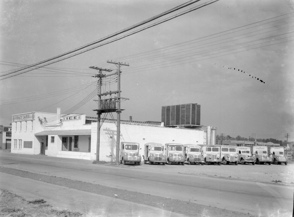 Exterior view of Foremost Dairies Incorporated. The company was located on the corner of East Market and Cherokee streets. Francis T. Walsh managed the company that dealt with dairies, milk, and cream.