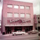 Exterior view of Freels Drug Store looking westward with a portion of the old City Hall building visible in the rear.