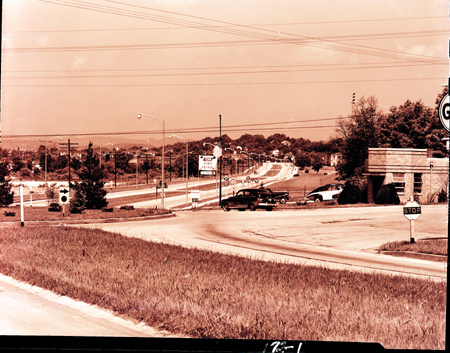 Intersection at Brooks Circle looking towards downtown.