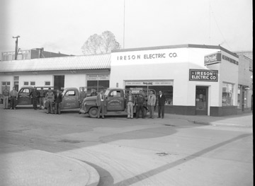The Ireson Electric Company building, trucks, and employees.